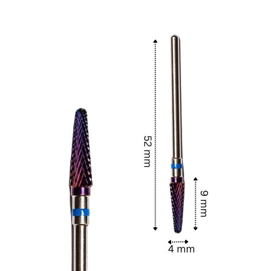 Cap de freza conic, realizat exclusiv din titan, avand o rezistenta ridicata si granulatie medie. Datorita stratului exterior de ultima generatie, Blue Tech, impiedica supraincalzirea unghiei, eliminand in totalitate posibilitatea chiar si a celui mai mic disconfort in timpul slefuirii, garantand totodata rezistenta, eficienta, dar si o curatare simpla si rapida.
