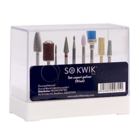Setul contine 9 capete de freza pentru unghii indispensabile pentru realizarea si intretinerea corespunzatoare a unghiilor tehnice.