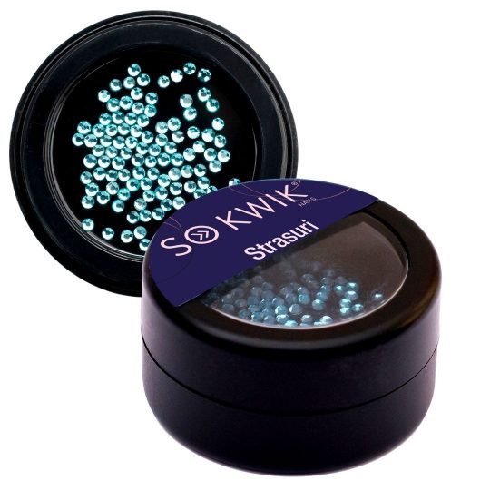 Pietricele de dimensiuni medii, albastru deschis, aquamarine, pentru NailArt, aproximativ 100buc/set.