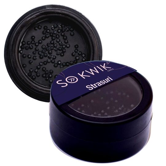 Pietricele de dimensiuni medii, negre. Strasuri pentru NailArt, aproximativ 100buc/set.